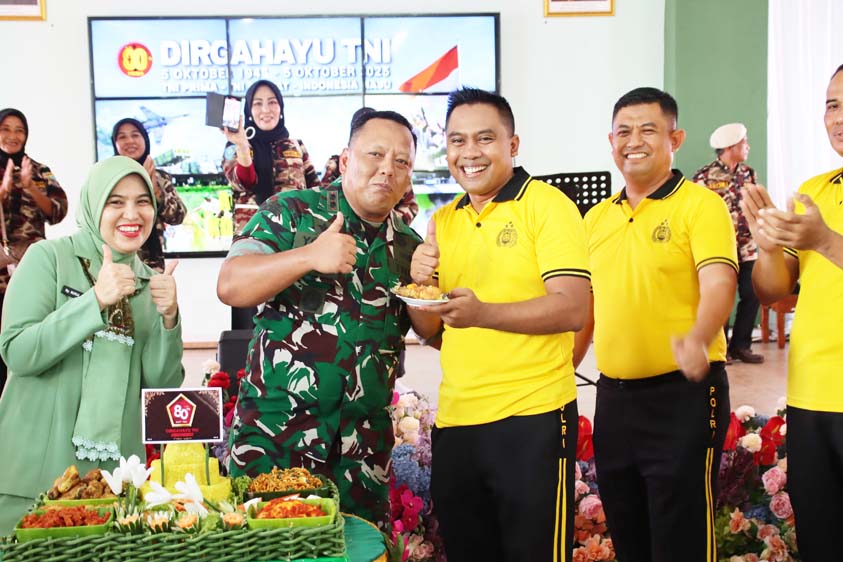 \Acara dilanjutkan dengan pemotongan tumpeng dan foto bersama antara jajaran Kodim 0402 OKI dan Polres OKI, menandai wujud keharmonisan serta semangat kebersamaan antara kedua institusi. (eml)