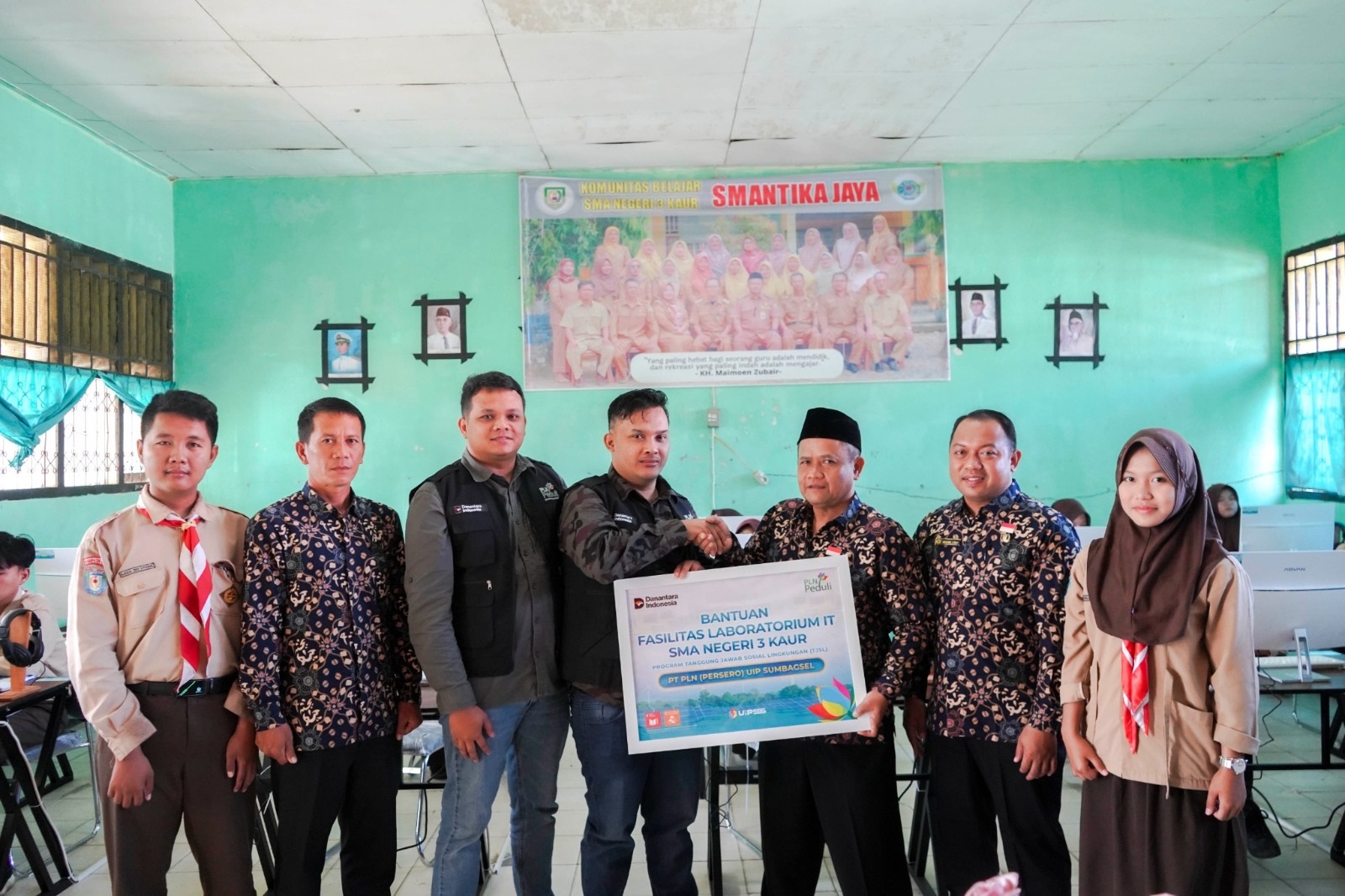 KAUR,KORANRADAR.ID – Dalam upaya mendukung pembangunan sumber daya manusia yang unggul dan berdaya saing di era digital, PLN UIP Sumbagsel melalui program Tanggung Jawab Sosial dan Lingkungan (TJSL) menyalurkan bantuan peralatan teknologi informasi serta menggelar pelatihan desain grafis bagi guru dan siswa SMA Negeri 3 Kaur, Kabupaten Kaur, Provinsi Bengkulu.
