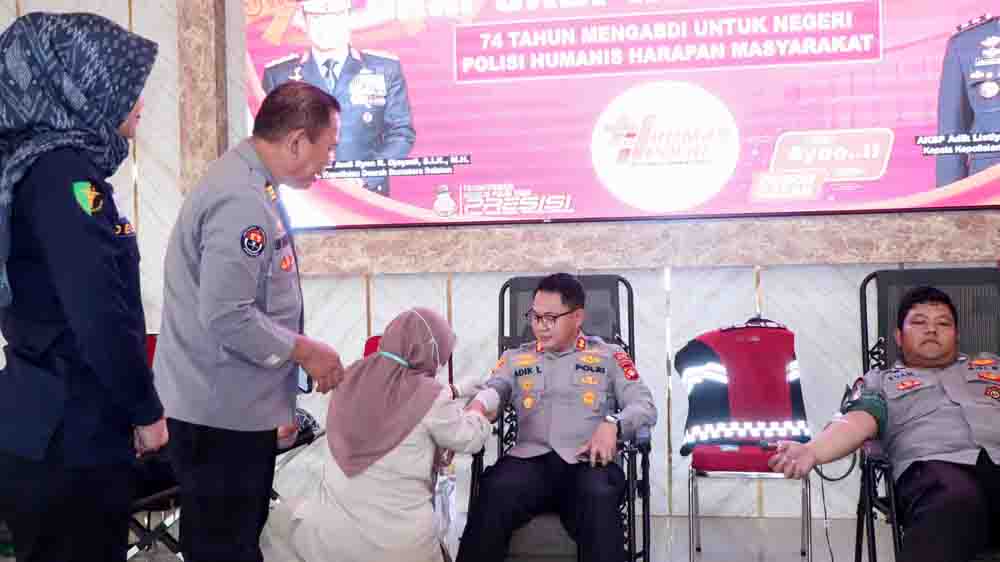 Polres OKU Timur Polda Sumsel melakukan kegiatan sosial donor darah yang diikuti personel Polres OKU Timur yang berlangsung di Aula Wicaksana Laghawa Polres OKU Timur, dihadiri Kapolres OKU Timur AKBP Adik Listiyono SIK MH didampingi para Kabag, Kasat dan--