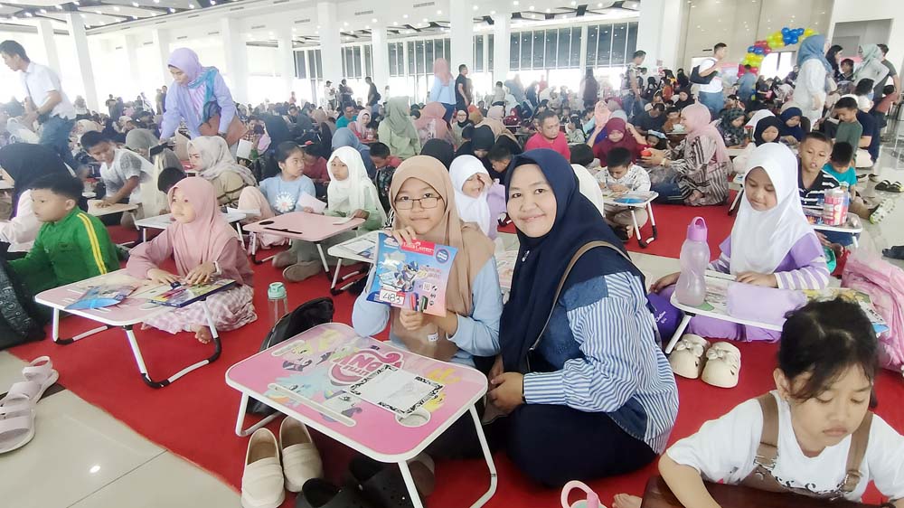 Ratusan Siswa/i dari berbagai sekolah di Kota Palembang untuk tingkat Sekolah Dasar (SD) mengikuti lomba mewarnai faber Castell "Creative Family Award" Hidupkan Kreatif, Bertempat di Palembang Trade Center (PTC). Sejak pukul 09.00 wib lokasi lomba mulai di padati peserta lomba anak-anak dan dampingi orang tuanya. (Salamun/Radar Palembang)