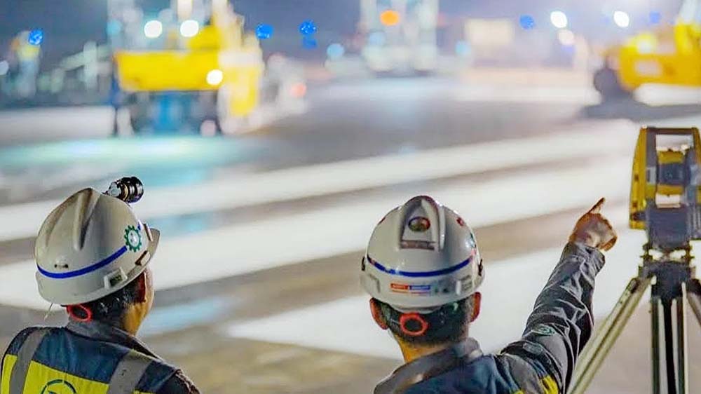 Ilustrasi - Pembangunan proyek Overlay Runway Selatan Bandara Internasional Soekarno-Hatta (CGK), yang dilakukan oleh PT PP (Persero) Tbk (PTPP).--