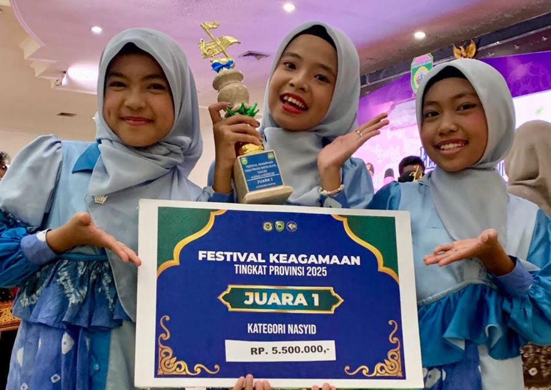 Trio XINARAN, yang terdiri dari Nabila, Xena, dan Kinara, berhasil menorehkan prestasi gemilang dengan meraih Juara 1 Lomba Nasyid pada Festival Keagamaan Tingkat Provinsi Sumatera Selatan 2025.