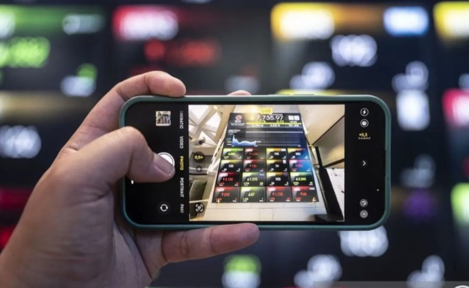 Ilustrasi - Karyawan memotret layar pergerakan indeks harga saham gabungan (IHSG) di Bursa Efek Indonesia, Jakarta.--