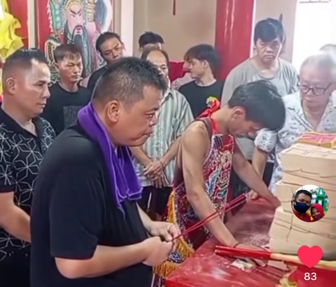 Tatung turut memeriahkan HUT dewa Heng Hu Tualang di kelenteng Wie An Bio Palembang--