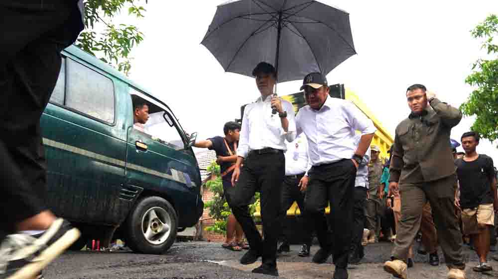 KAYUAGUNG, KORANRADAR.ID - Gubernur Sumsel H Herman Deru didampingi Bupati Ogan Komering Ilir (OKI) H Muchendi, meninjau progres perbaikan ruas jalan Sp Padang–Pampangan–Tulung Selapan, kemarin.