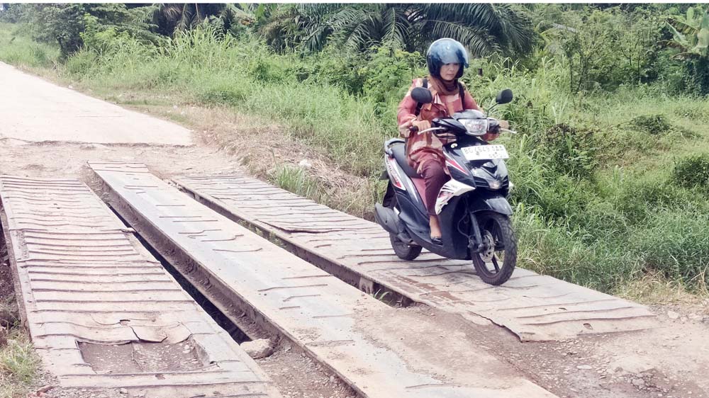 Sejumlah pengendara mobil dan motor tetap ekstra hati-hati sekali untuk melintas di atas jembatan rangka baja ini yang berada di jalan M Sulaiman Soekrna Hatta Kelurahan Talang Kelapa Kecamatan Alang-alang Lebar Palembang, banyak ban kendaraan mobil terjebak meski kerap mendapat pertolongan tetap menakutkan untuk sesama pengandara dalam mengeluarkan dari jebakan jembatan tersebut. Kiranya pihak terkait dapat segera memberikan atau memperbaiki jembatan baja menjadi jembatan beton permanen. (Salamun/Radar Palembang)
