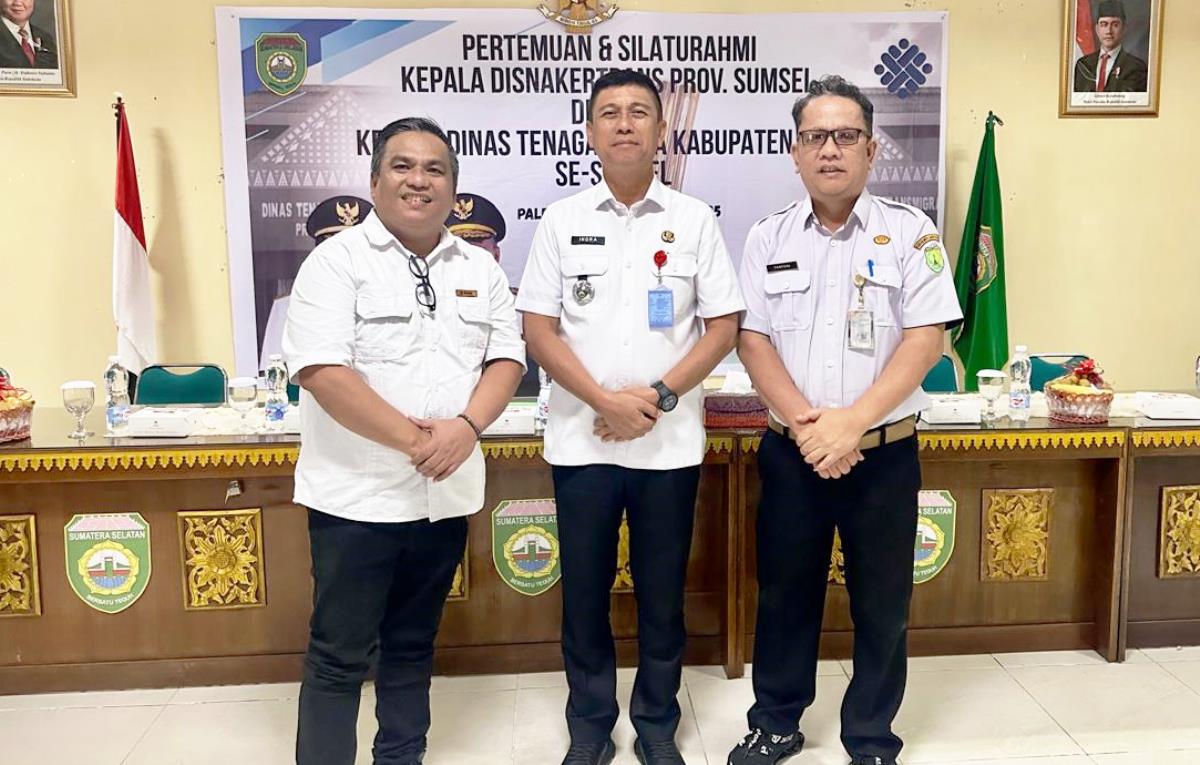 Kepala Dinas Disnakertrans Provinsi Sumsel H Indra Bangsawan, memimpin pertemuan silaturahmi yang bertujuan untuk memperkuat sinergitas pelaksanaan tugas antar pemerintah provinsi dan kabupaten/kota.